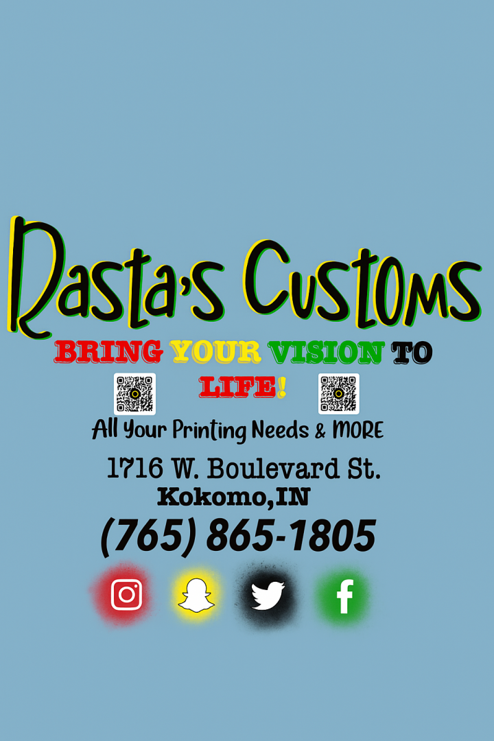 What would you do with the $25,000?The $25,000 would take Rastas Customs to the next level by creating an interactive showroom where people can come in, design, and press their own apparel for a real experience. I would invest in more equipment to grow production and bring more jobs to Kokomo. Most importantly, it would help me launch my prison mission, teaching printing skills and creating second chances for people who deserve a fresh start.