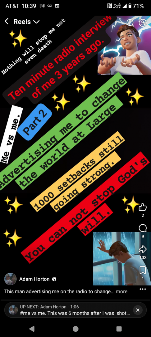 I'm here to change the world. I had a axe though head while asleep. Bullet though the head walking home from dinner with my wife. Purpose dr