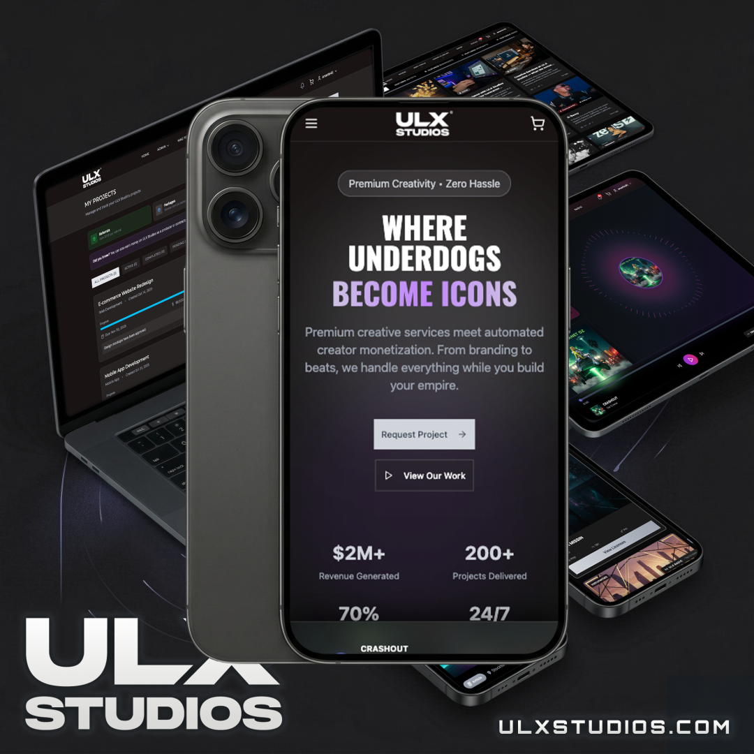 Learn MoreGrowing up in Stockton, I watched talented creators struggle, not because they lacked skill, but because they lacked access to professional branding, production, and marketing. That gap became my mission. The mission is clear: turning limited resources into a cultural movement. I built ULX Studios with that same energy, starting from a failed record label, learning from every mistake, and channeling it into a platform where independent artists and entrepreneurs get premium services and tools.