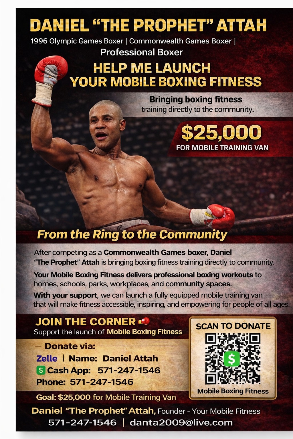 Name is Daniel Attah, they called me 'The Prophet' in the boxing ring. I am launching (YMBF) YOUR MOBILE BOXING FITNESS.
