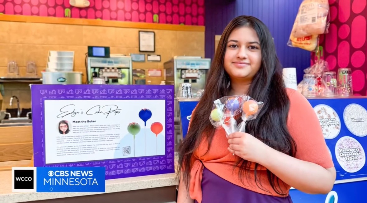 Edyn is a young baker who, at 11, cold-called Mall of America to sell cake pops. Now 14, she sells them at Nickelodeon Universe.