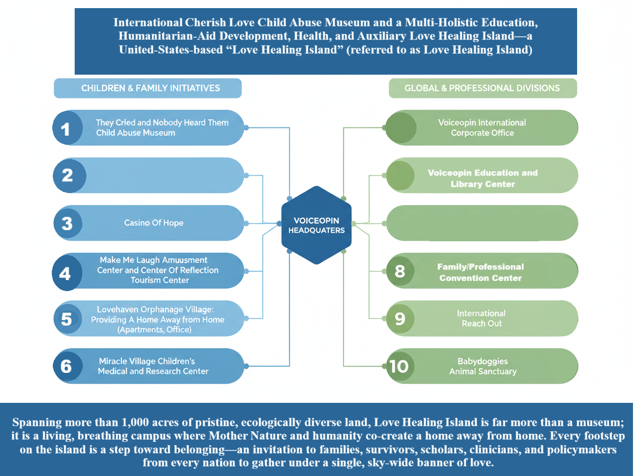 Free RegistrationBuilding the International Cherish Love International Child Abuse Museum and Multi Holistic Education, Humanitarian Aid Health and Auxiliary Services Love Healing Island operate with a unifying goal: to diminish child abuse. Our theme song They Cried And Nobody Heard Them keeps me centered: https://www.youtube.com/watch?v=zxio2tRRo44