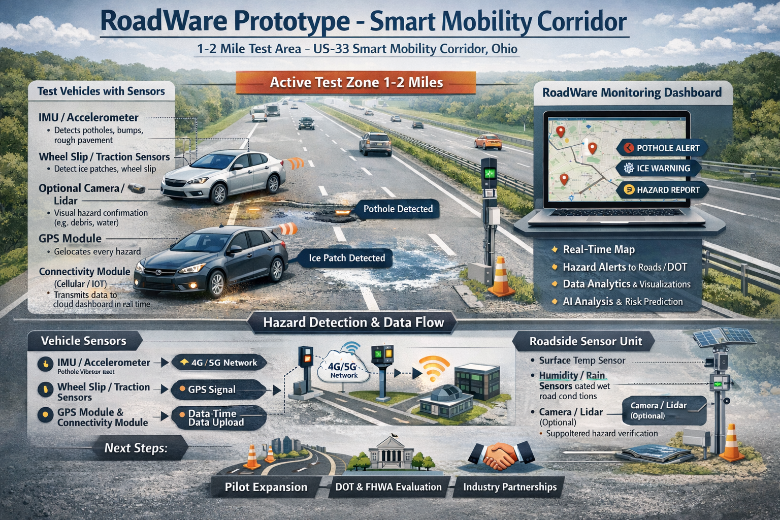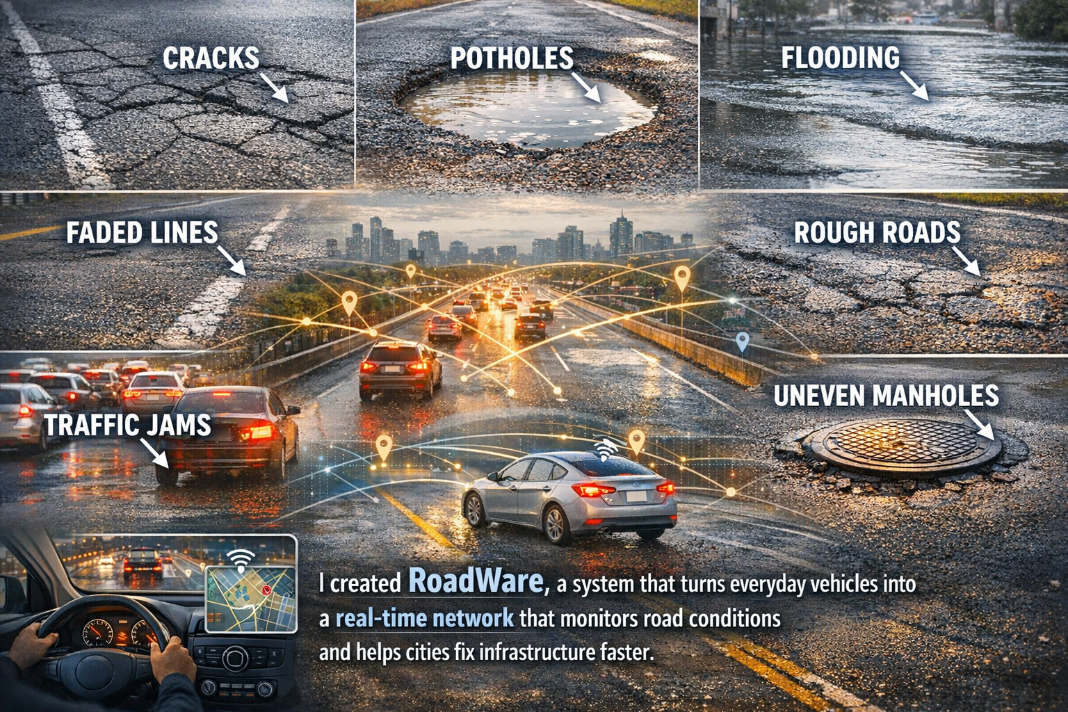 I created RoadWare: cars that monitor roads so cities can act faster.