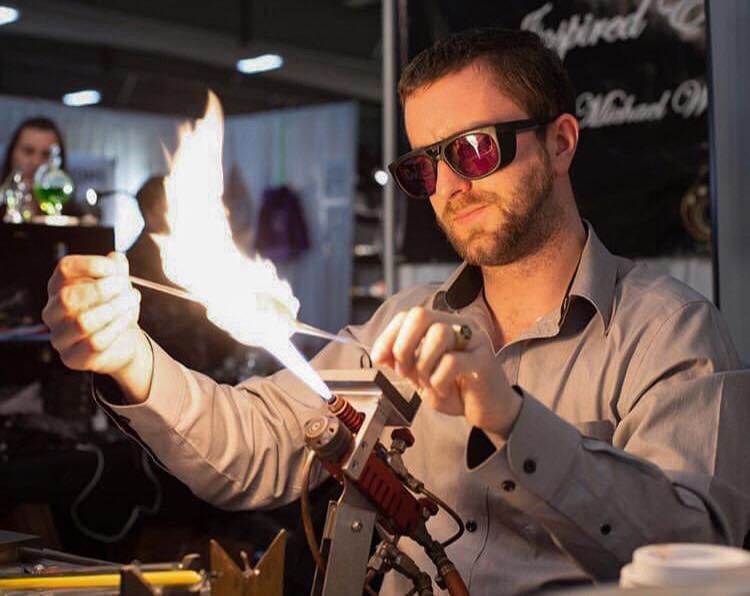 Since 2008, Michael has been working as leading torch glassblowing artist, making elegant sculpture, stemware, and cannabis art pieces