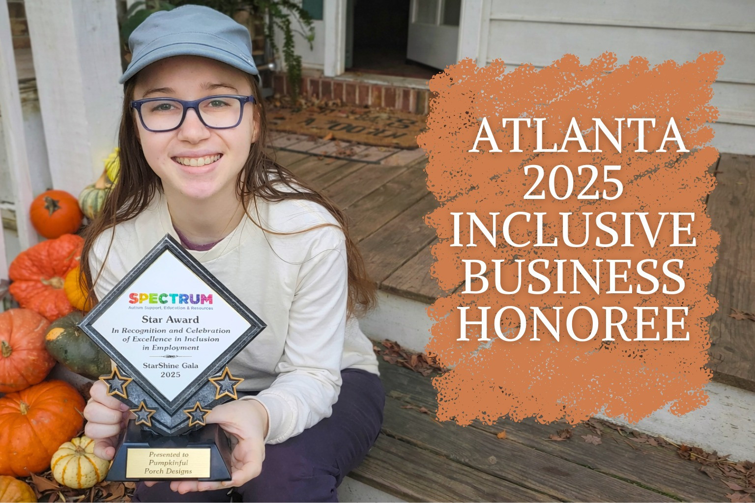 Award-winning autistic entrepreneur using art and design to build a luxury pumpkin porch decorating business rooted in inclusion.